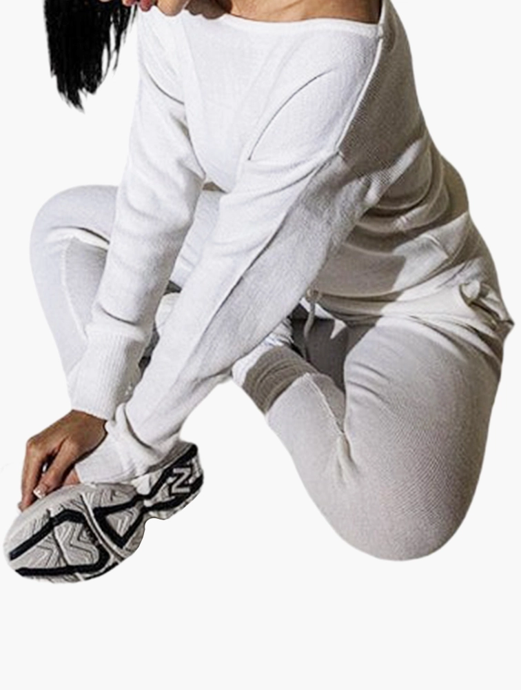Lounge like a queen in our cold-shoulder knit set, designed for comfort and style.