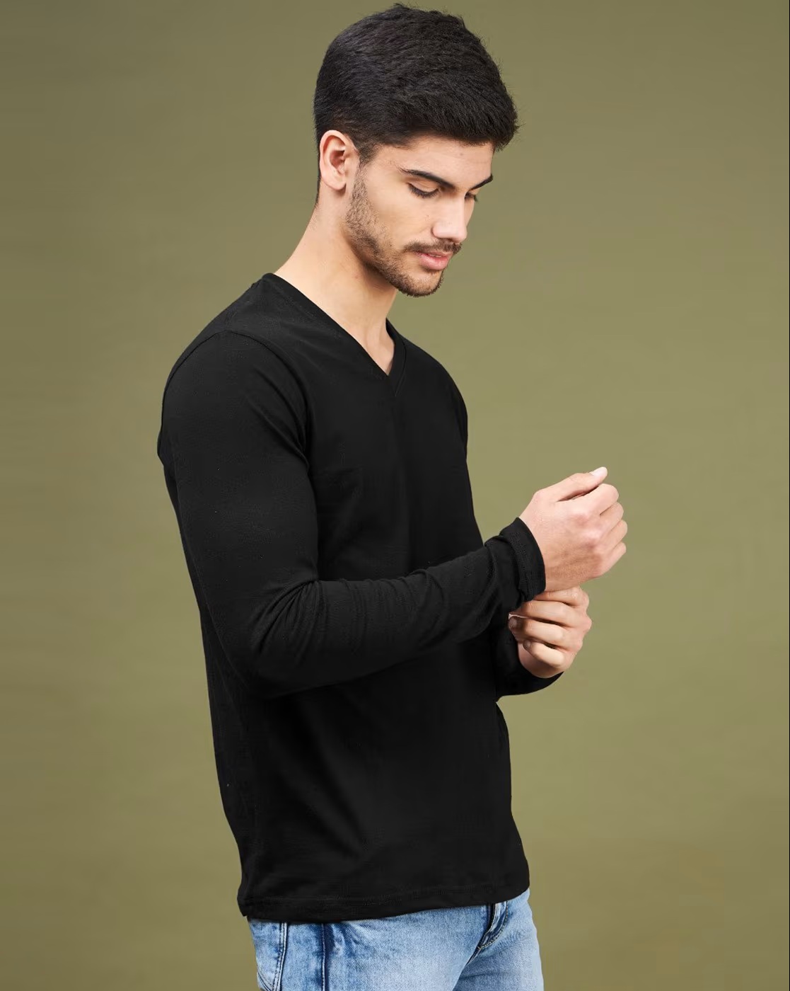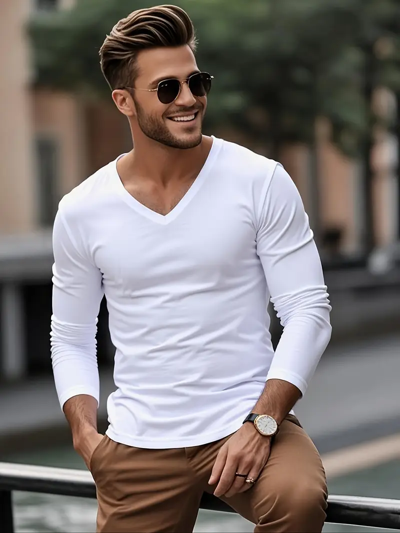Gewoon een T-shirt met V-hals en borstmotief voor elke dag